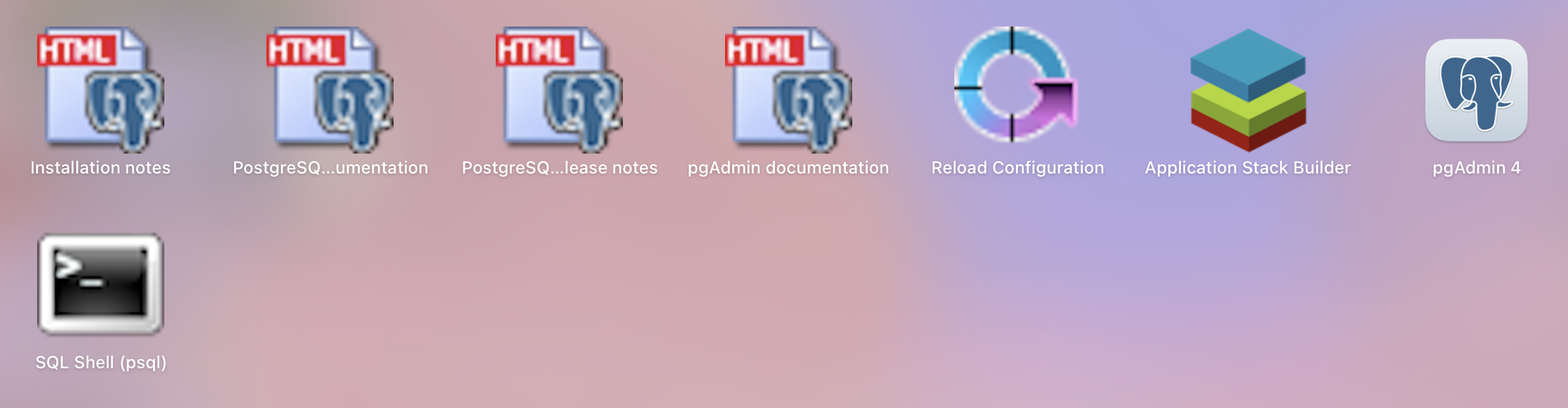 - StackBuilder: 추가 PostgreSQL 도구와 드라이버를 다운로드하고 설치하는 패키지 관리자 (관리, 통합, 마이그레이션, 복제, 지리공간 도구 및 커넥터 등 포함